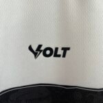 A gola traz recorte no estilo “Y” na cor preta, já os punhos ganha as cores tricolores. O escudo do Santa Cruz é aplicado no lado esquerdo do peito, enquanto o logo da Volt, em um novo estilo de aplicação, aparece no lado direito, na cor preta. Na nuca, um selo com a palavra “Cordel” é aplicada em preto.