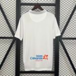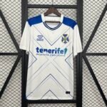 A camisa do CD Tenerife na temporada 2025/2026, modelo Home, destacou-se por unir tradição e inovação em um design harmonioso. Predominantemente branca, a peça trouxe um elegante padrão de cruz — inspirado na bandeira e no brasão da ilha — composto por camadas de linhas em gradação azul, criando profundidade e um efeito visual marcante