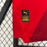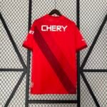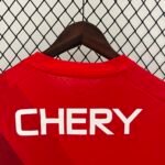 A camisa reserva é novamente vermelha e tem uma faixa transversal dupla, com tons mais escuros da cor. A gola redonda e os punhos são também de um tom mais escuro.