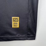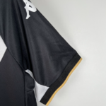 As mangas são pretas com as axilas brancas e os punhos pretos com bordas douradas. O logo da Kappa aparece no lado direito do peito e ombros em branco.