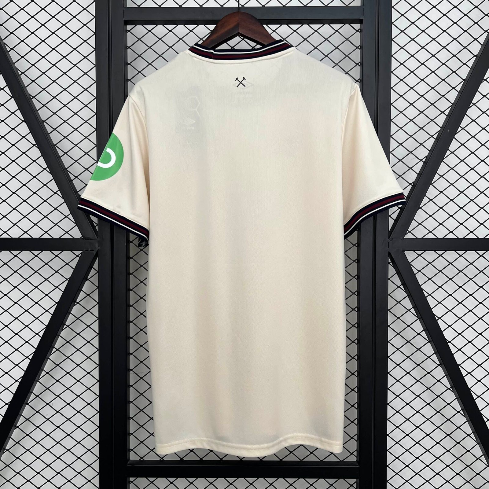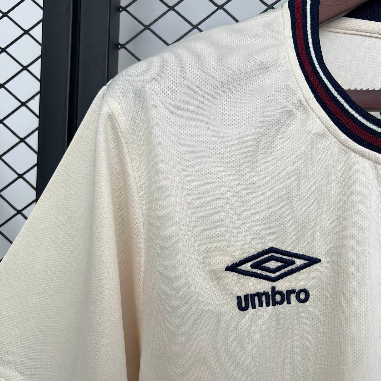 O escudo do clube aparece no lado esquerdo do peito, numa versão azul marinho, mesma cor do logo da Umbro, no lado direito do peito. O patrocínio máster da Boyle Sports, que substitui a Betway, aparece na mesma cor.