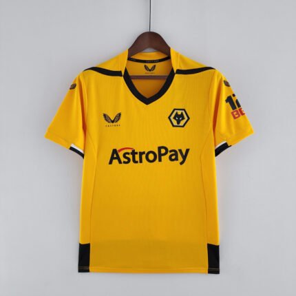 O escudo dos Wolves é aplicado no lado esquerdo do peito, enquanto o logo da Castore aparece no lado direito, e nas mangas, em preto. A grande novidade fica pelo patrocínio máster da AstroPay, que substitui a casa de apostas ManBetX.