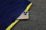 O "Kit Agasalho de Treino" é a opção ideal para o dia a dia e as sessões de treino. Fabricado em poliéster, proporciona conforto duradouro. Este conjunto, designado como jogo, apresenta mangas longas e um escudo bordado. A calça complementar possui dois bolsos frontais, elástico na cintura e cordão para ajuste preciso. Com uma composição de 92% poliéster e 8% elastano, destaca-se pela tecnologia de malha aberta, proporcionando uma ventilação eficiente para manter o ar fresco circulando, eliminando calor e suor durante as atividades físicas.Esses agasalhos são os mesmos utilizados por times durante os treinos, sendo especialmente indicados para ambientes frios. Em locais mais quentes, os jogadores preferem o kit de treino convencional, sem agasalho, optando por peças de manga curta e short.